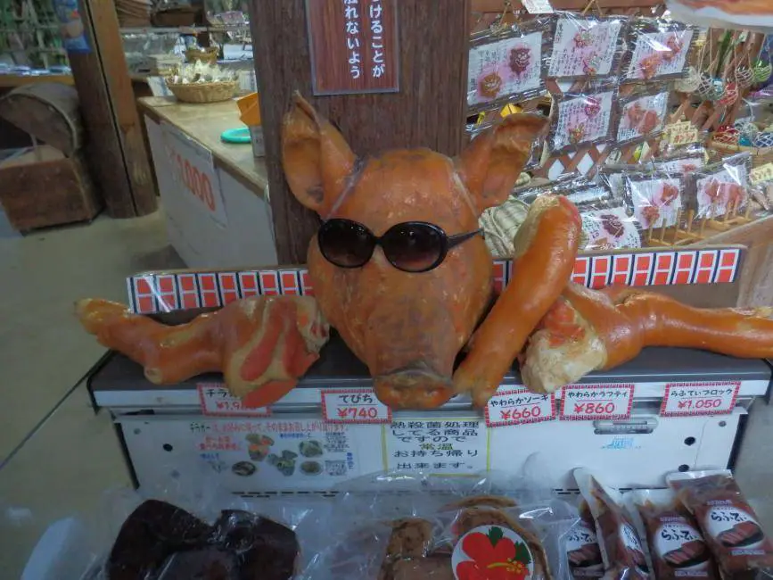 Aus irgendeinem Grund scheinen vakuumverpackte Schweinegesichter in den Souvenirläden und Lebensmittelläden auf Okinawa ein fester Bestandteil zu sein, was für Uneingeweihte etwas abschreckend sein kann.