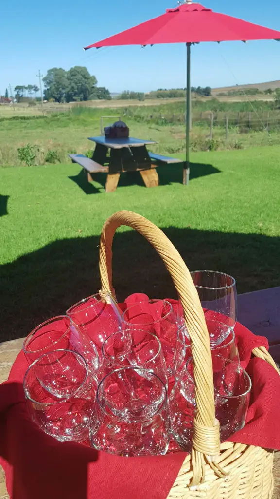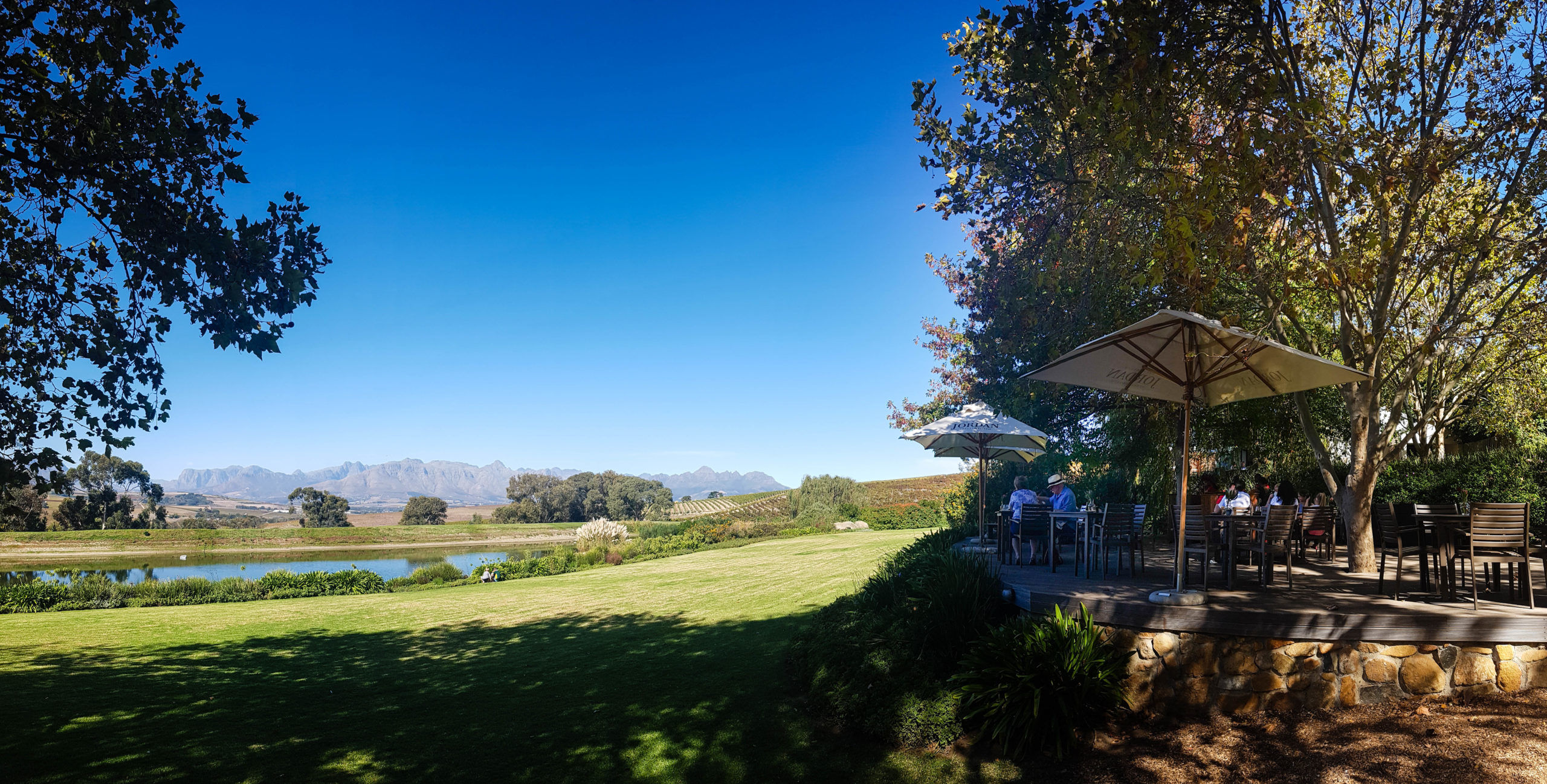 The wine estate has an on site “Bakery” as well, which is a bistro style restaurant. There is a nice sitting area outside beneath the trees, overlooking a water reservoir, the vineyards and a view onto the mountain range. Try their cheese platter and add some pastries and a coffee. They also serve lunch, if you should be more hungry.