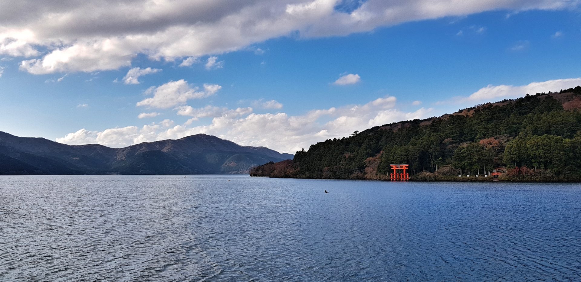 In Hakone gibt es heiße Quellen (Onsen), die aus den Schwefelquellen des Owakudani-Tals gespeist werden. Ein weiterer beeindruckender Ort ist der Hakone-Schrein, ein Shinto-Schrein mit einem roten Torii-Tor, das den Ashi-See überragt. Der Schrein kann auch von einer Bootsfahrt aus der Ferne betrachtet werden.