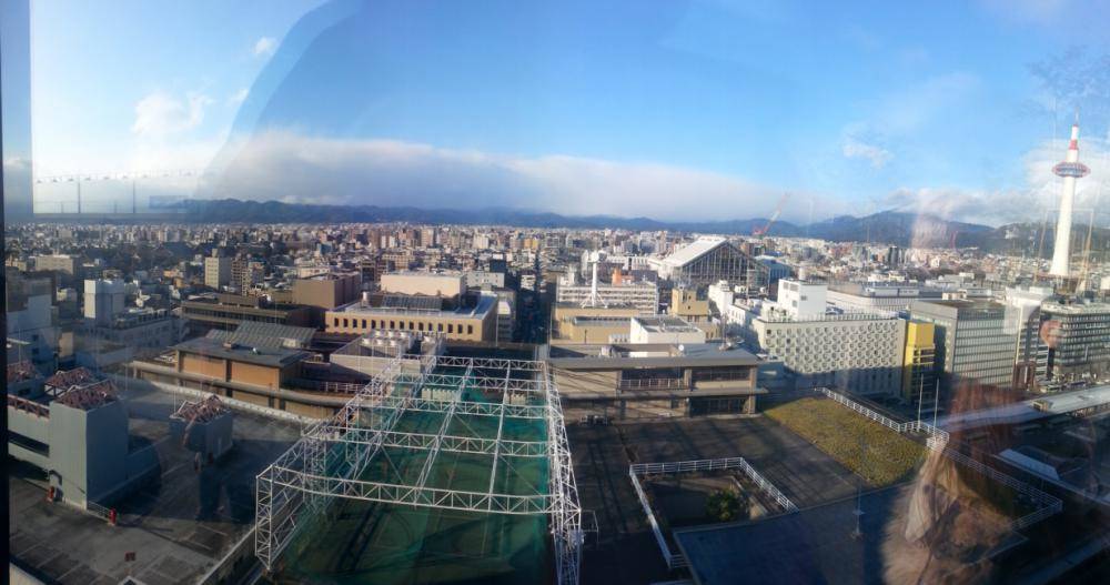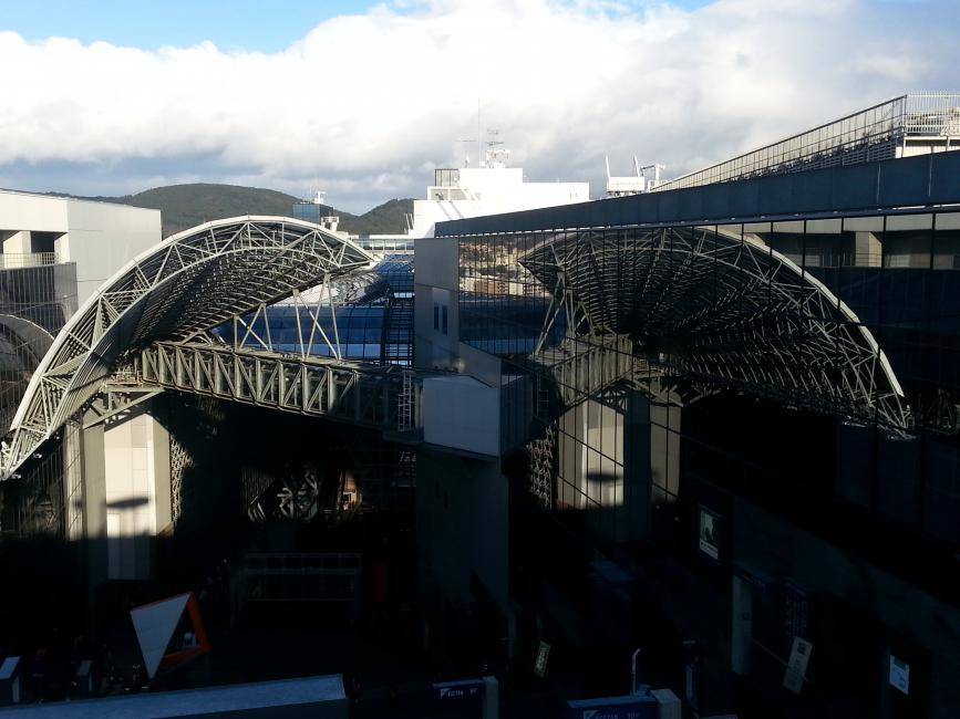 Das 1997 (zur 1200-Jahr-Feier Kyotos) eröffnete Gebäude ist das zweitgrößte Bahnhofsgebäude Japans, aber mit 70 Metern Höhe und 470 Metern Länge auch nicht gerade klein. Er beherbergt ein Hotel, ein Einkaufszentrum, ein Kino und ein Kaufhaus und dient als Umsteigemöglichkeit zwischen Shinkansen, Nahverkehrszügen, U-Bahn und Bus.