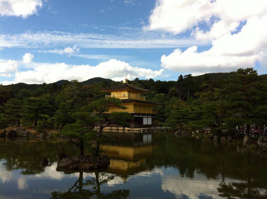 Wahrscheinlich hast du das Bild des goldenen Pavillions schon einmal gesehen. Der Tempel ist eines der Hauptattraktionen in Kyoto und wird von den meisten Touristen besucht.